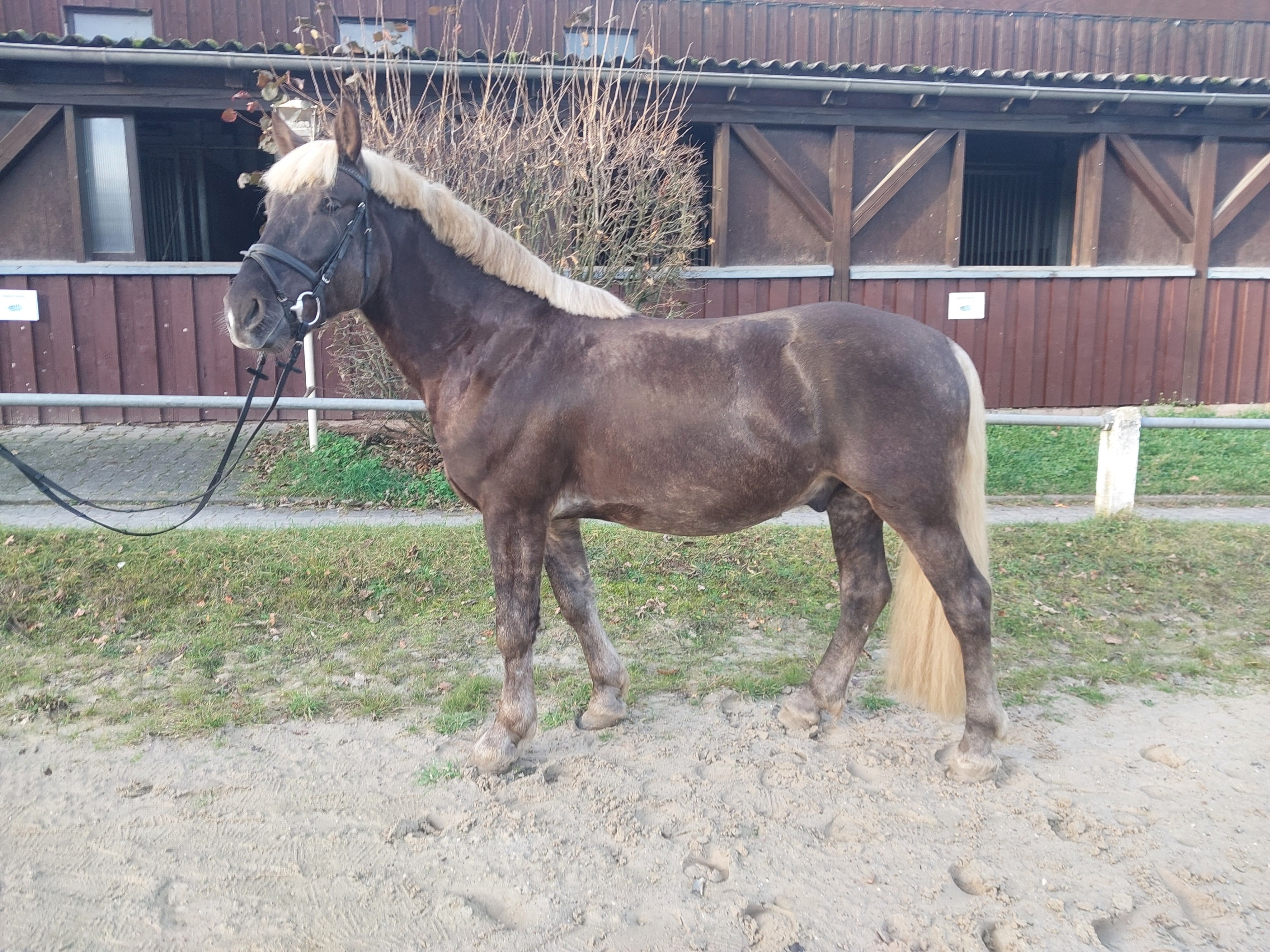 Nino, wie er bei uns liebevoll genannt wird, ist ein schokoladenbraunes Kleinpferd mit auffälliger heller Mähne – ein echter Hingucker im Stall, der nicht nur optisch sofort begeistert. Viele Reitschüler verlieben sich auf den ersten Blick in den hübschen Wallach mit dem sanften Blick und dem freundlichen Wesen.